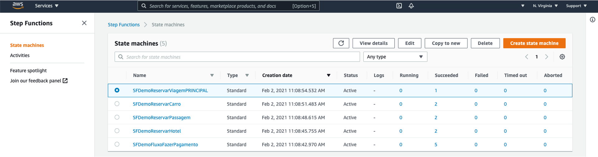 Alternativa 1 – Utilizando o AWS Management Console do Step Functions