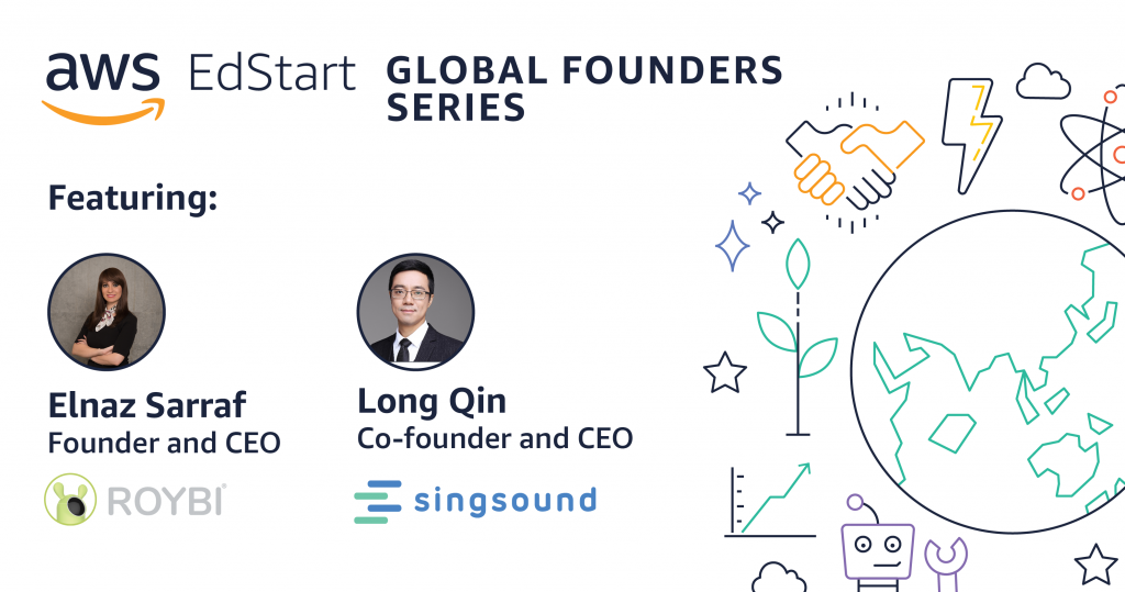 Os membros e fundadores doAWS EdStart Long Qin da Singsound e Elnaz Sarraf da ROYBI estão usando inteligência artificial (IA) para revolucionar o aprendizado inicial de idiomas. Long, baseado em Pequim, na China, é dedicado a fornecer educação de inglês acessível e de qualidade para todas as famílias em toda a China. Elnaz, com sede em São Francisco, CA, Estados Unidos, dedica-se a mudar a abordagem única do nosso sistema educacional global.