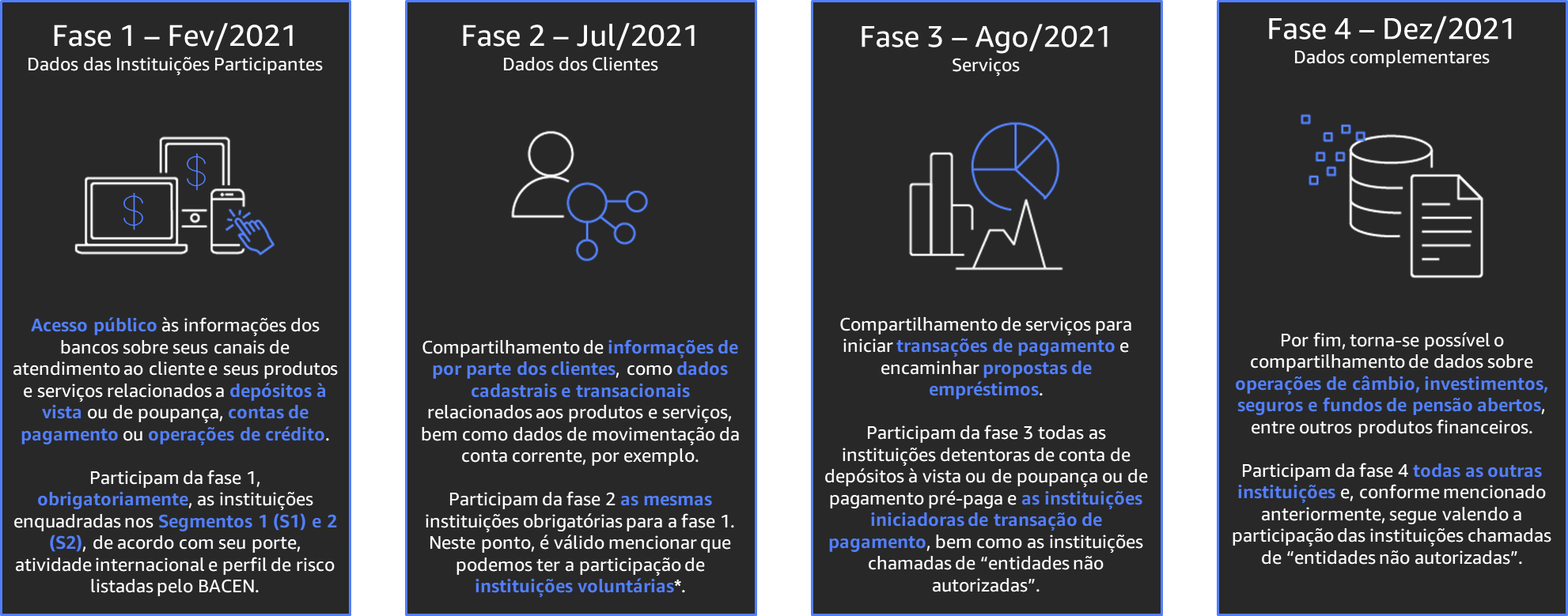 *São instituições que, originalmente, entrariam no ecossistema nas fases 3 ou 4 porém, por decisão estratégica, decidem participar do Open Banking desde as fases iniciais.