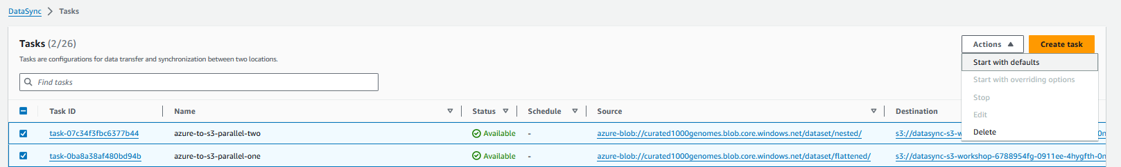 - Inicie a task do DataSync, e ela moverá seus dados de forma segura e confiável para o local de destino.