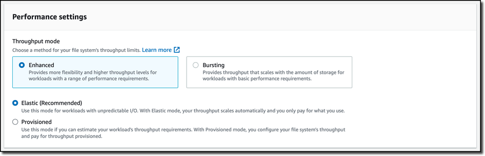- EFS Archive — Custo-otimizado para dados de longa duração acessados algumas vezes por ano ou menos e oferecendo desempenho semelhante ao EFS IA.