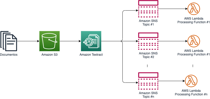 Em seguida, o Amazon Textract analisa os documentos submetidos pelo cliente e extrai automaticamente os dados relevantes utilizando reconhecimento de caracteres e processamento de linguagem natural. Isso gera insights estruturados cruciais para a análise de crédito. Os dados extraídos são inseridos em funções do AWS Lambda, que realizam a validação inicial de crédito através de regras pré-definidas para verificar a integridade dos dados.