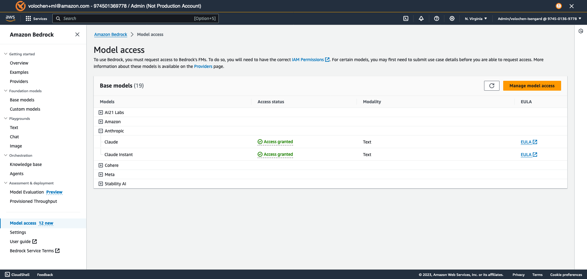 - Clique no botão “Manage model access”