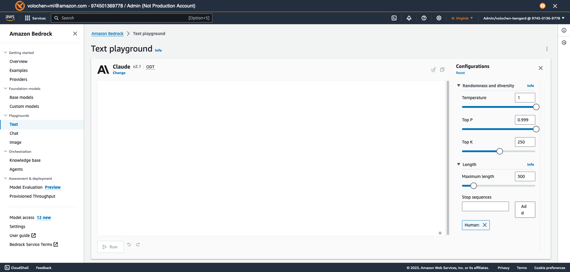 Figura 3: Tela do Amazon Bedrock Text playground