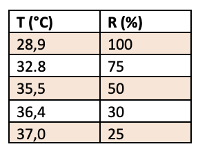 Tabela 2: Queda do rendimento (R) com a temperatura do ar (T) em trabalhos pesados de perfuração, com perfuradores experientes, aclimatados, trabalhando 3 horas consecutivas nas frentes de trabalho (GANCEV, 2006)