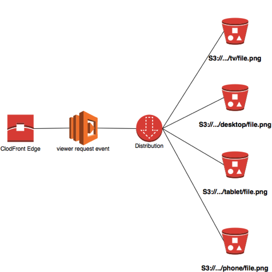 Esta função utiliza a integração entre CloudFront e Lambda chamada AWS Lambda@Edge. Ele permite que o código decida dinamicamente qual imagem retornar ao usuário com base no tipo de UserAgent especificado pelo dispositivo. A versão atual suporta 6 tipos diferentes de dispositivos: desktop, tv, tablet, telefone, bot e carro. Para este tutorial será utilizado um bucket S3 como origem, entretanto qualquer origem de uma distribuição CloudFront Web deve ser compatível.