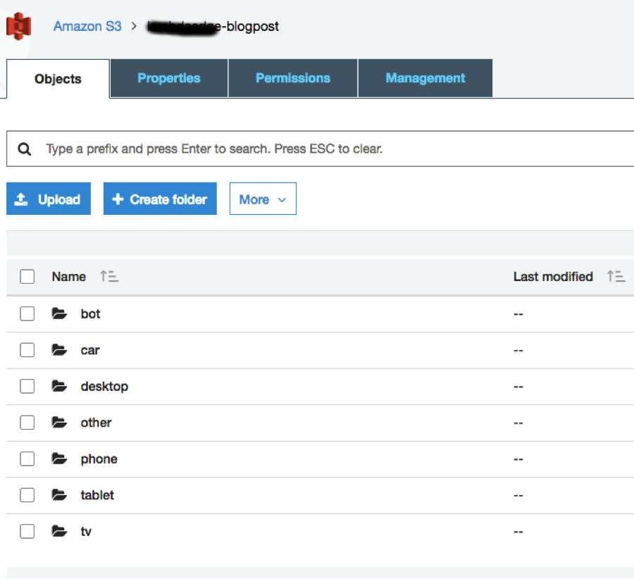 Na imagem abaixo, podemos ver um exemplo de como definir a estrutura de pastas no bucket S3.