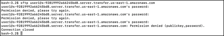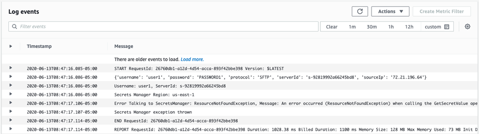 - O acesso é validado quando a função Lambda compara os valores fornecidos pelo usuário com aqueles apresentados pelo AWS Secrets Manager. Aqui é onde podemos usar a senha, chave SSH ou IP de origem para permitir, negar ou limitar o acesso do usuário.