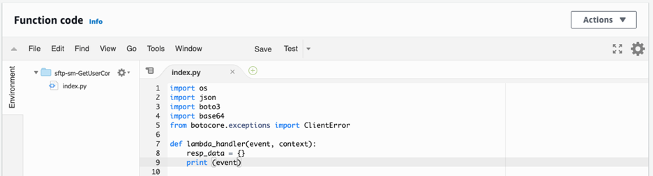 Neste post, mostrarei como implementar o modelo de exemplo fornecido na guia do usuário, para usar o AWS Secrets Manager como um provedor de identidade acessado por uma função Lambda, podemos usar o endereço IP de origem da conexão do cliente com o AWS Transfer para SFTP.