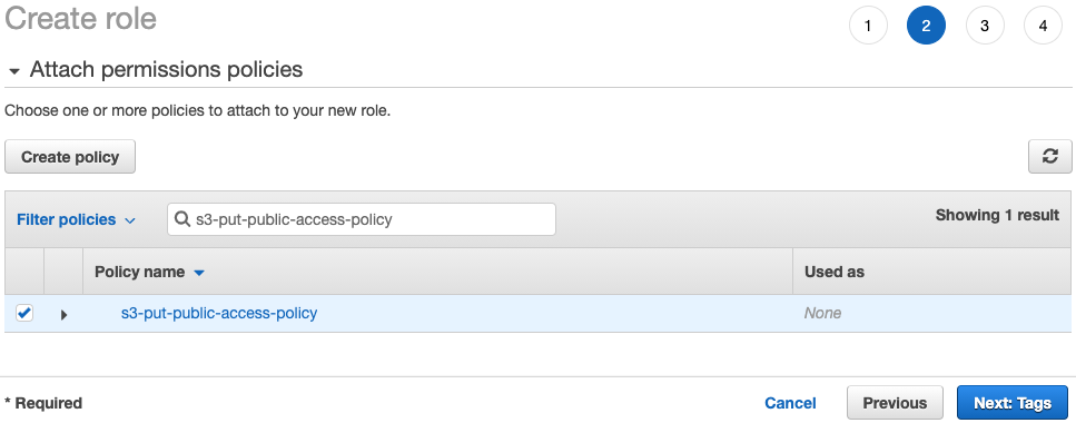 - "s3:GetBucketPublicAccessBlock"