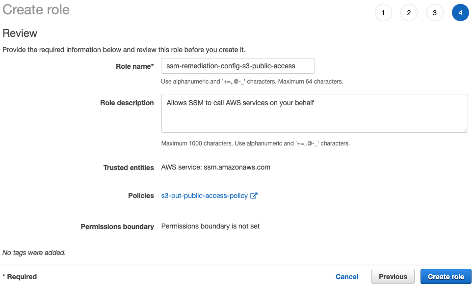 O AWS Config utilizará o AWS Systems Manager para executar a remediação no Amazon S3. Sendo assim, após criar a Rule de verificação dos buckets públicos no S3, precisaremos criar um IAM Role com permissões para a remediação. Para isso, vamos seguir os seguintes passos.