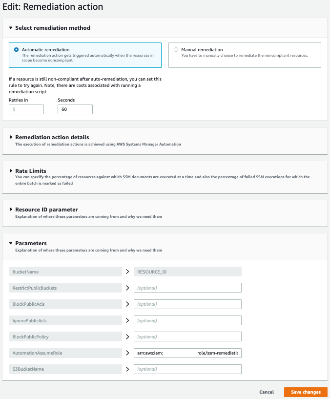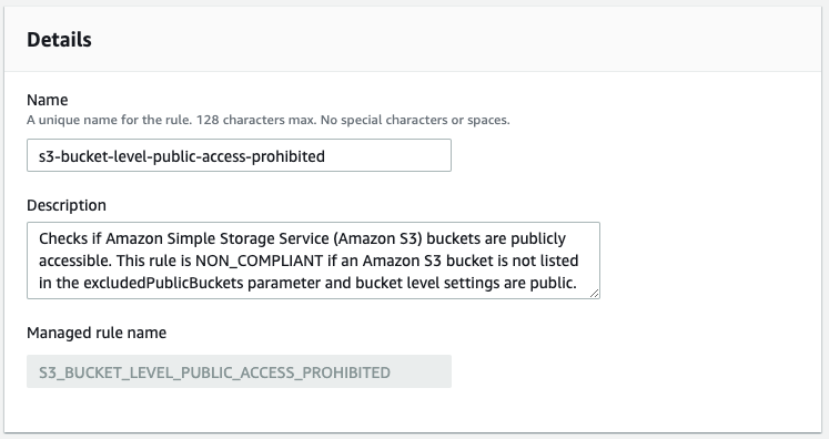 TargetId: "AWSConfigRemediation-ConfigureS3BucketPublicAccessBlock"