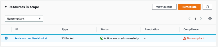 Ou podemos selecionar apenas o bucket que desejamos executar a remediação de forma manual e clicar em Remediate.