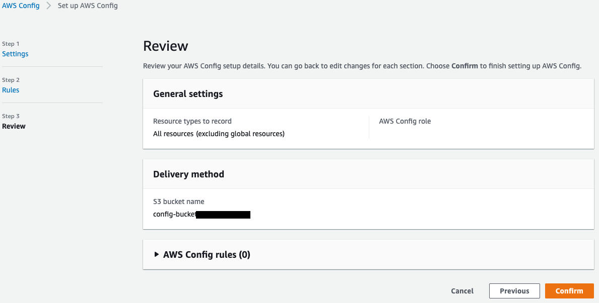 Caso o serviço AWS Config ainda não esteja habilitado na conta AWS, utilize este template do AWS CloudFormation para habilitar o AWS Config.