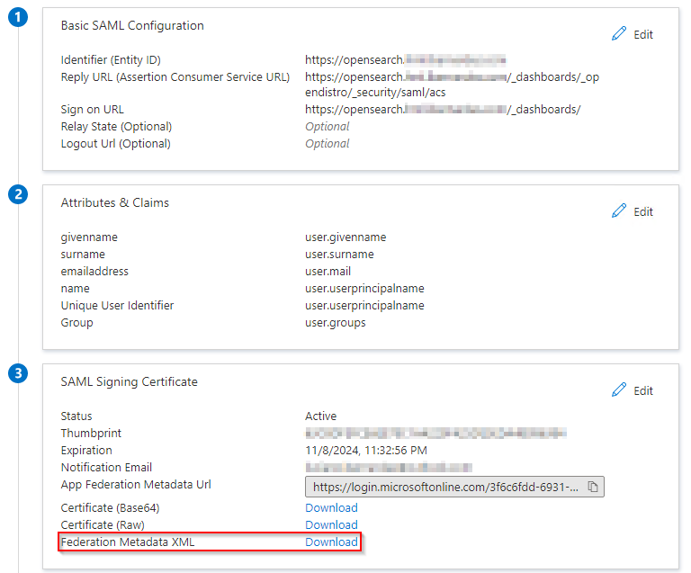 Uma vez que essa etapa foi finalizada, baixamos o arquivo XML de Federation Metadata, para concluirmos a configuração no lado do Amazon OpenSearch Service: