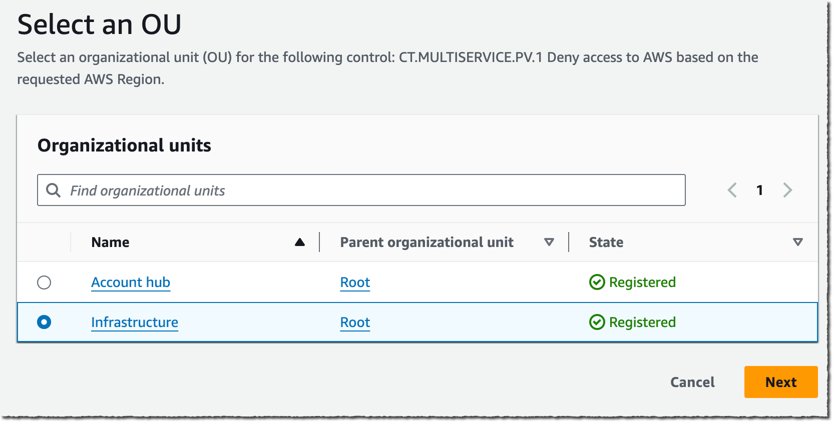 On the next page, I select the Organizational units (OU) for which I want to enable this control.