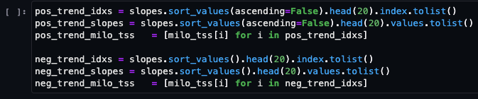 - Теперь вы можете построить график пяти наиболее динамичных положительных и отрицательных тенденций, чтобы определить основные движущиеся компоненты временного ряда.