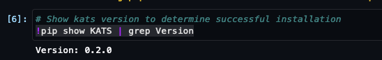 - После успешной установки всех зависимостей, проверьте установку Kats.