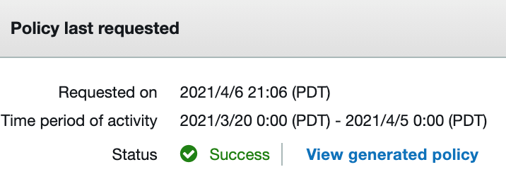 - После того, как политика доступа будет готова, вы увидите уведомление. Чтобы просмотреть права доступа, выберите View generated policy, как показано на изображении 4.