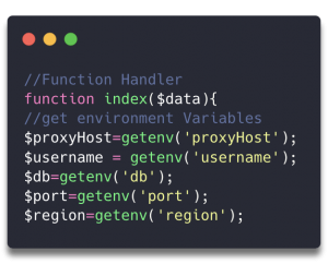 Обработчик функции под названием index представляет собой точку входа в код функции. Вначале вызывается getenv() для того, чтобы получить переменные окружения, установленные при развёртывании приложения через SAM. После этого они доступны в локальных переменных до окончания вызова Lambda-функции.