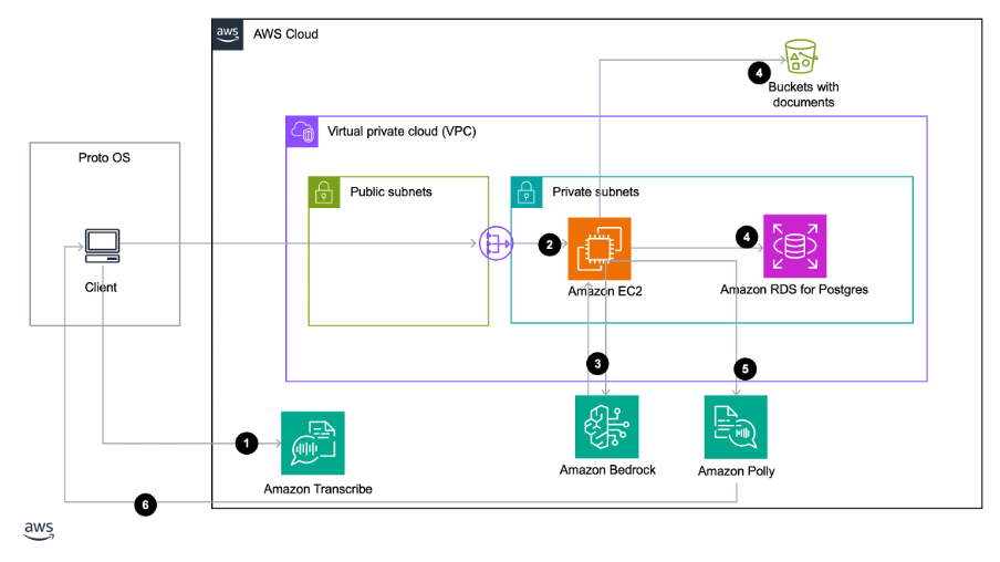 Proto ha inoltre implementato Amazon Polly , un servizio cloud che converte il testo in voce realistica, e Amazon Transcribe, un servizio di riconoscimento vocale che converte automaticamente la voce in testo. Ciò consente loro di adattare la propria soluzione per supportare conversazioni in lingue diverse come il giapponese, il coreano e lo spagnolo.