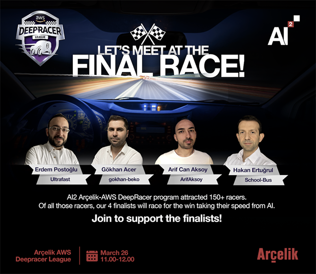 Dünyanın önde gelen beyaz eşya üreticisi Arçelik, verimliliği artırmak ve yeni hizmetlerde inovasyon yapmak için 2019 yılından bu yana AWS ile iş birliği yapıyor. Arçelik olarak veri ve yapay zekanın küresel tüketim malları pazarındaki rakiplerine göre kritik bir avantaj sağladığına inanıyoruz. Arçelik, 2023’ün sonuna kadar 1.000’den fazla veri ve yapay zeka uygulayıcısını eğitmeyi hedefleyerek, şirket genelinde yapay zeka ve makine öğrenimi (ML) yeteneklerini güçlendirmek için AWS ile işbirliği içinde AI2 programını başlattı. AI2 programının amacı, teknik ve teknik olmayan geçmişe sahip bireyleri, Arçelik’in faaliyet gösterdiği tüm alanlarda veri ve yapay zeka yoluyla değer yaratmayı öğrenebilecekleri ve deneyimleyebilecekleri bir yolculuğa çıkarmaktır. Arçelik’in AI2 programının birinci aşaması olarak Arçelik, çalışanlarının yapay zeka ve makine öğrenimi konusunda becerilerini geliştirmelerine yardımcı olmak için ilk küresel AWS DeepRacer Ligi’ne ev sahipliği yaptı.