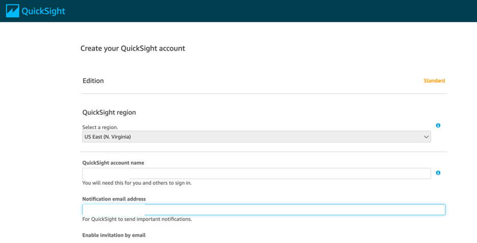 Amazon QuickSight hesabınızı oluşturmak için aşağıdaki adımları tamamlayın.