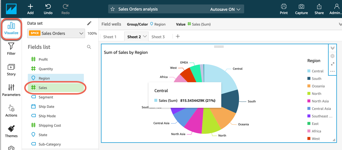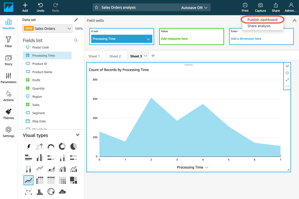 Not: Daha fazla bilgi için Amazon QuickSight belgelerinde Analizlerle Çalışma bölümüne bakın.