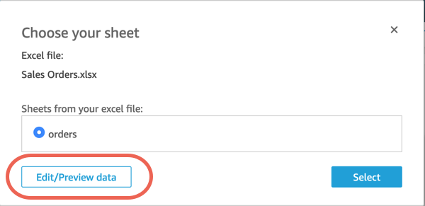 d. Sayfanızı seçin iletişim kutusunda siparişleri seçin ve ardından Verileri düzenle/önizle’yi seçin.